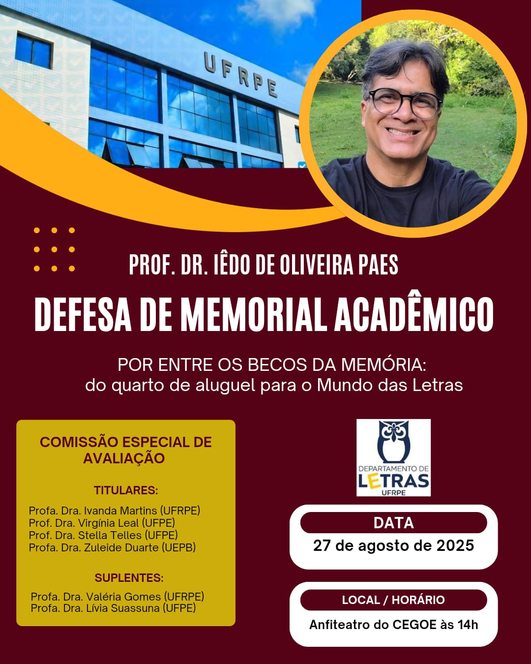 Docente apresenta memorial acadêmico nesta quarta-feira (27/08)