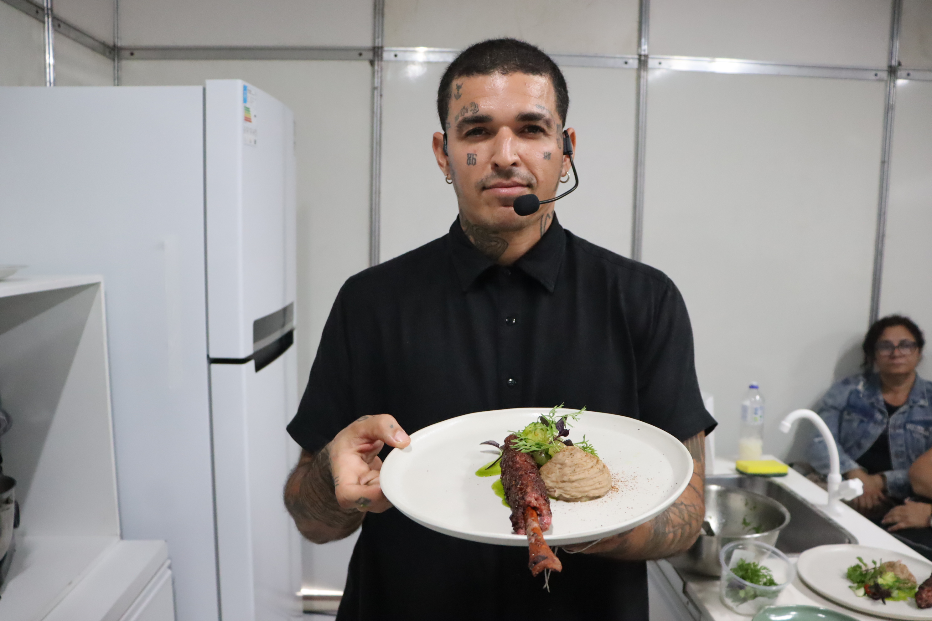 Quem comandou as panelas foi o chef Yuri Machado, do restaurante Ca-já, que preparou uma Kafta de bode, acompanhada de Húmus de Feijão fradinho e uma salada de uvas do vale do são Francisco.